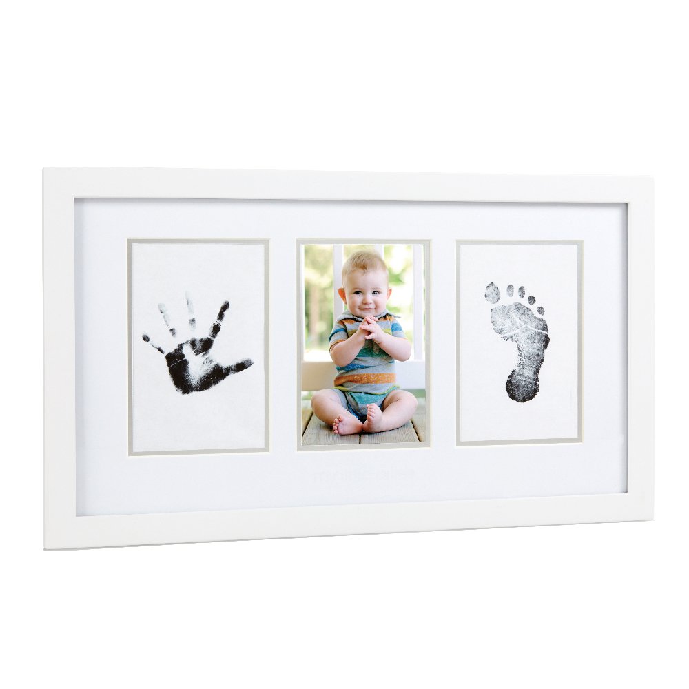 Immortalise les petites mains ou les petits pieds de bébé en glissant ses empreintes dans un cadre. Le set contient 2 tampons encreurs Clean-Touch et deux cartes d'impression. Le cadre est quant à lui très sobre, blanc et convient donc parfaitement aux petites filles comme aux petits garçons. Une déco unique et un magnifique souvenir des premiers mois de la vie de bébé.