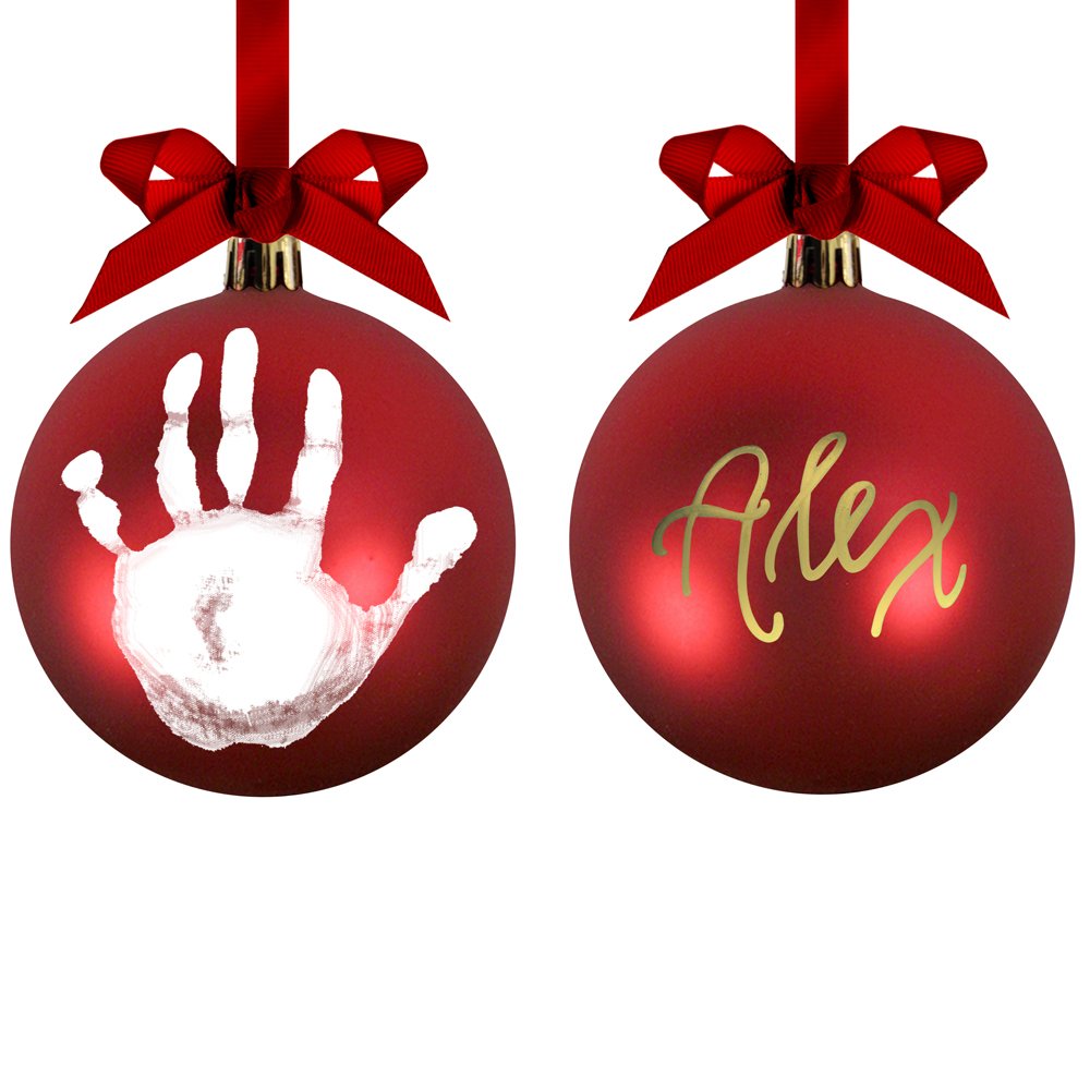 Avec ce kit, créez une boule de Noël unique! Bébé pourra marquer de son empreinte de main cette jolie boule de Noël et vous pourrez inscrire de l'autre côté son prénom. C'est merveilleuse décoration pour le sapin de Noël.