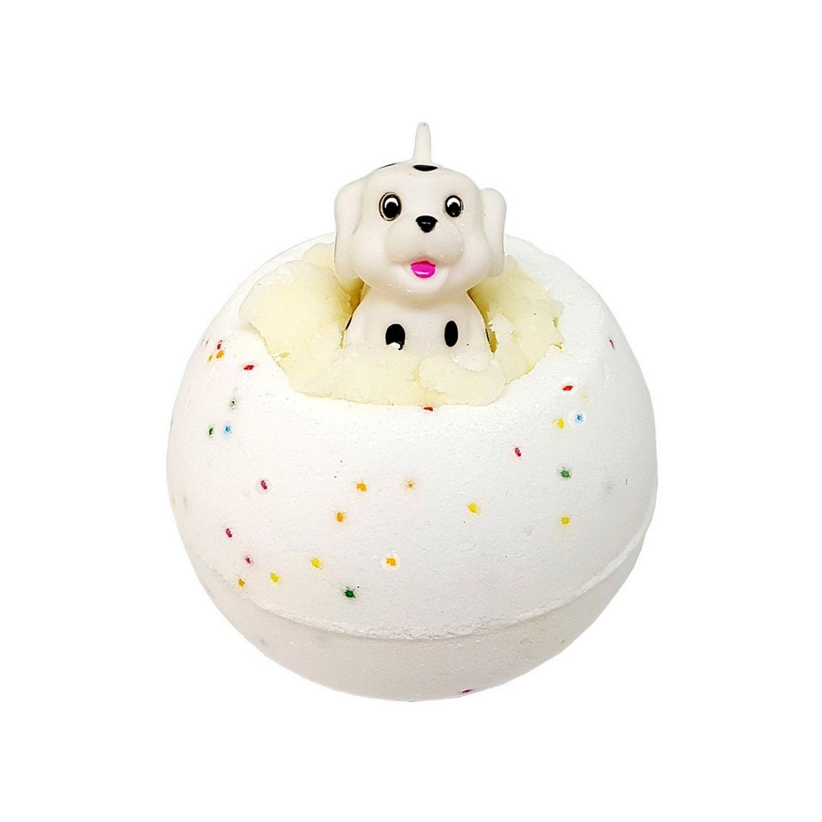 Cette bombe de bain sucrée te permet de terminer ta journée sur une note rafraîchissante. Elle sent bon la coco et contient des huiles essentielles de myrrhe et coco qui t’assureront détente et relaxation. Elle est particulièrement agréable le soir avant de se coucher. Une fois la bombe entièrement dissoute apparait un petit dalmatien dans l'eau pour un bain 100% plaisir et fun. Elles sont fabriquées en Grande-Bretagne à la main avec des composants naturels et biodégradables.