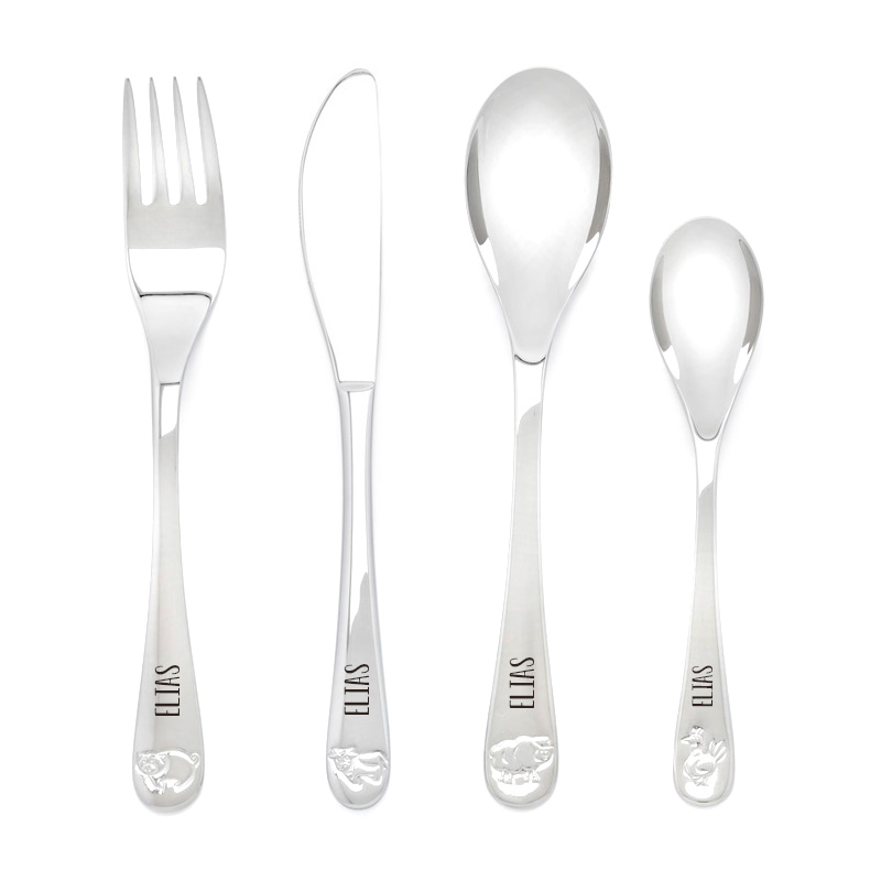 - Contenu : 1x fourchette, 1x couteau, 1x cuillère, 1x cuillère à dessert