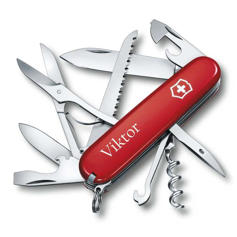 Les célèbres couteaux Suisse Victorinox ici avec personnalisation ! Tu es ainsi parfaitement équipé pour toutes les situations. Avec le couteau de poche Huntsman, tu disposes d'outils pratiques qui te facilitent et te simplifient la vie au quotidien, mais également en voyage. Petit, polyvalent et de grande qualité !