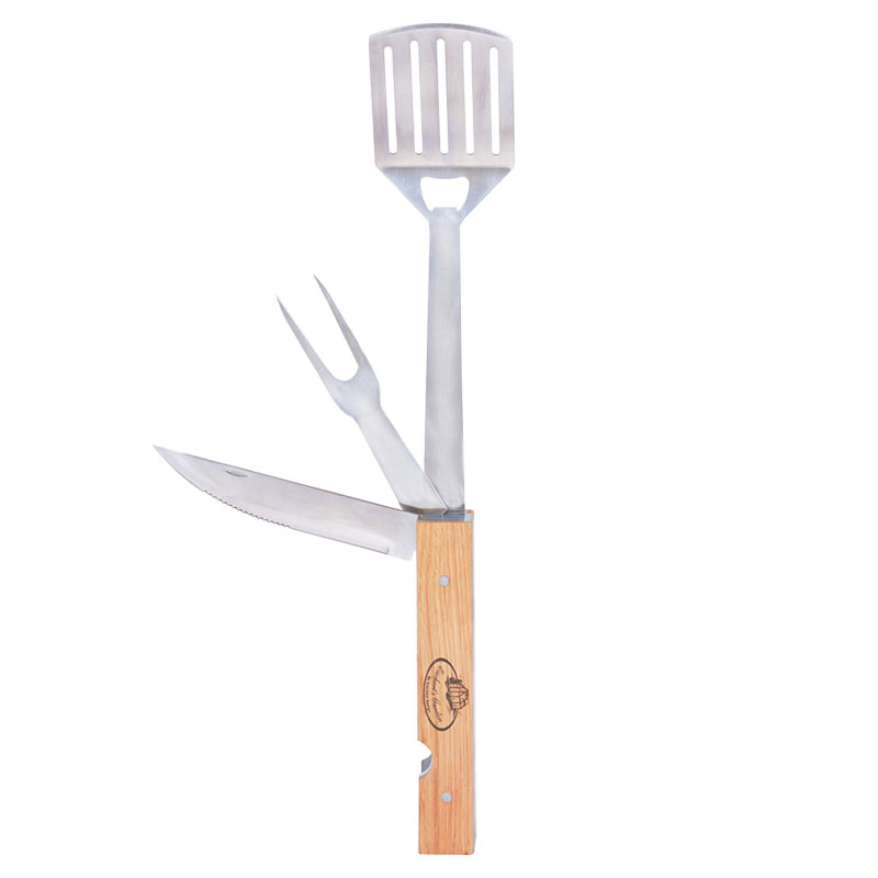 Avec cet outil BBQ multifonction, vous redécouvrez la cuisine en plein air. Extrêmement peu encombrant, il combine une spatule, un couteau et d'une fourchette et dispose également d'un décapsuleur. Idéal en déplacement pour préparer de délicieuses grillades.