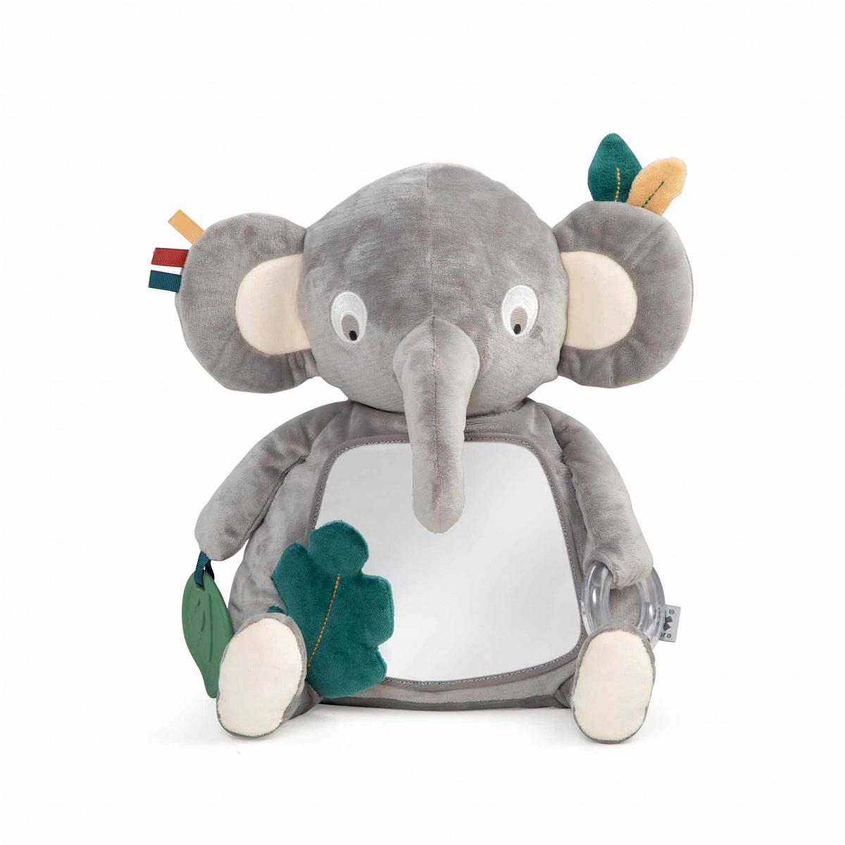 Une peluche d’éveil avec anneau d'activités et de dentition qui peut accompagner votre enfant partout ! Avec un miroir, du papier à froisser et un anneau de dentition accroché à un adorable éléphant, votre enfant pourra développer les sens du toucher, de la vue et de l'ouïe ainsi que la perception de soi et la motricité.