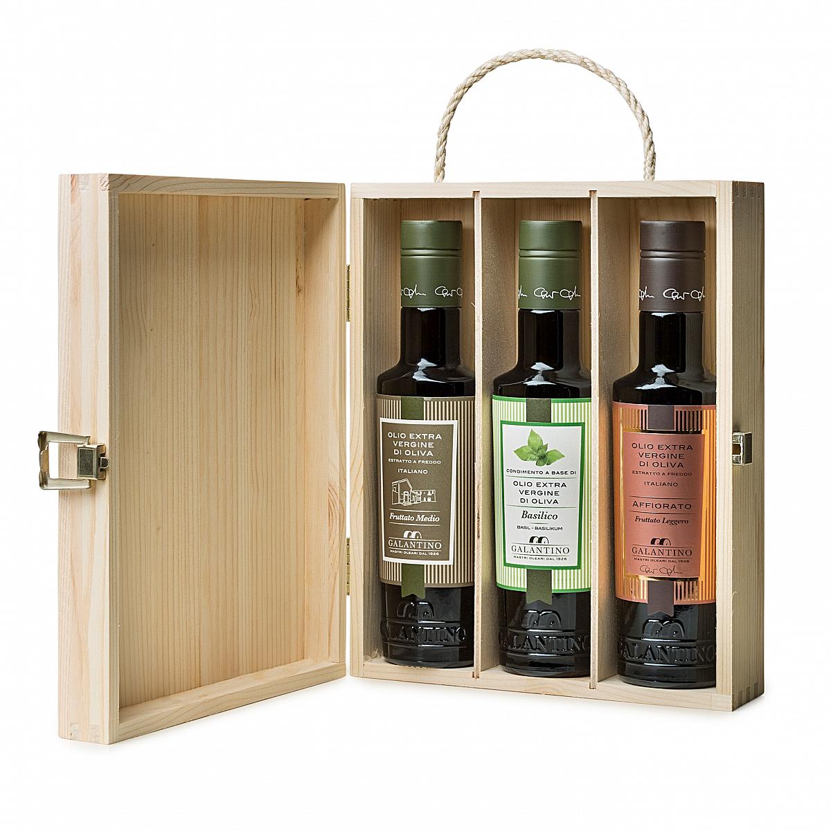 Découvrez l'huile d'olive extra vierge italienne à travers ce set varié. Galantino est un producteur de qualité renommé des Pouilles, en Italie, qui possède un nombre impressionnant d'oliviers cultivés par ses soins sur les collines pittoresques du sud de l'Italie. Toutes les variétés d'huile d'olive sont produites à partir d'olives soigneusement sélectionnées et offrent un goût inimitable. Parfait pour les gourmets, les amateurs de cuisine italienne, elle est incontournable pour les expériences culinaires.