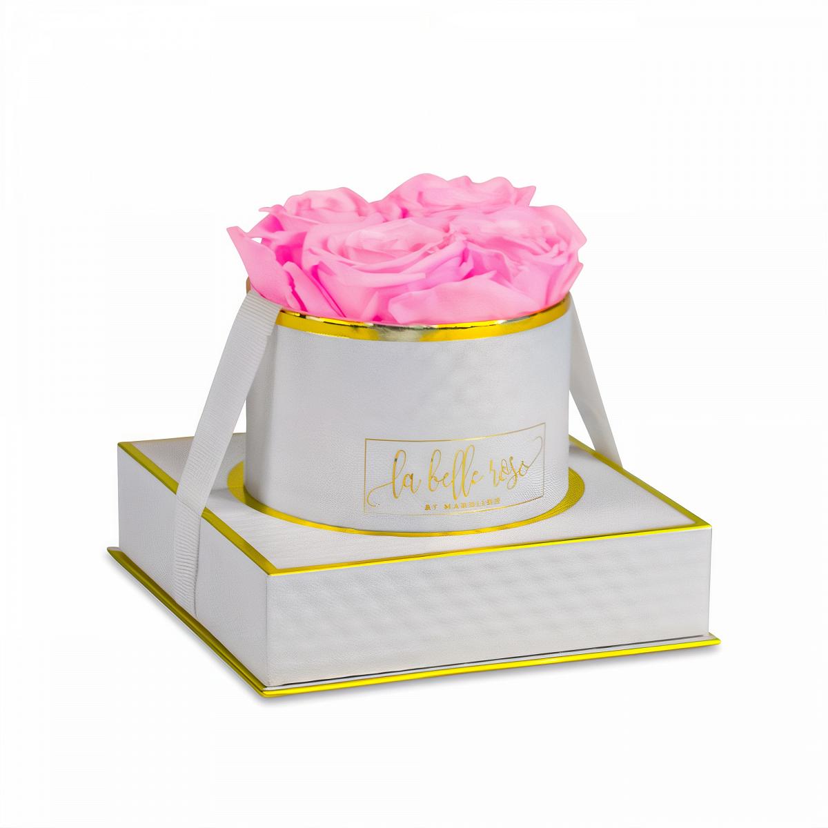 Cette luxueuse flowerbox garnie de roses Bridal Pink est un cadeau qui plait en toute occasion. Découvrez la beauté et la qualité de ces somptueuses roses éternelles. Chaque boîte contient des roses sélectionnées à la main qui conservent leur fraîcheur et leur beauté pendant 2 à 3 ans, sans avoir besoin de les arroser. De superbes roses qui ont toujours l’air fraiches dans leur élégante boîte à chapeau. Profitez-en ou offrez-les.