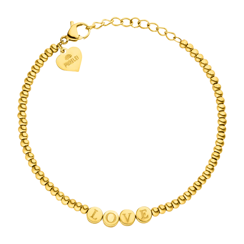 Vous allez adorer le bracelet Spread Love gold ! Il se compose d’une succession de petites perles brillantes et de quatre perles plates gravées qui, ensemble, forment le mot "Love". Ce bracelet respire l'amour et l'énergie positive. Un merveilleux accessoire pour montrer son attachement et Ton affection à quelqu’un qui vous est cher. Montrez au monde à quel point l'amour est important pour vous !