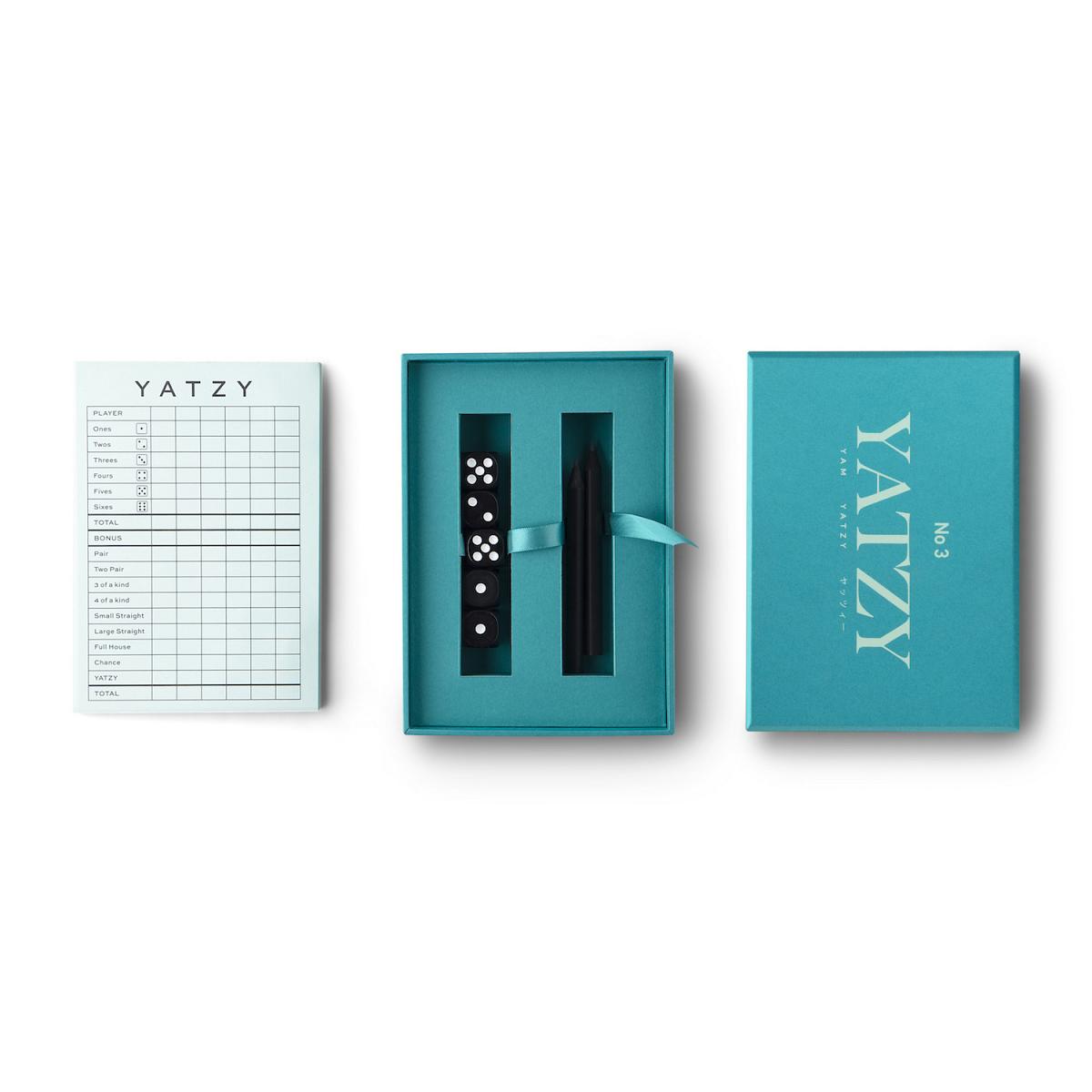Grand classique des jeux de dé, le Jeu de Yams vous est proposé sous une forme moderne et minimaliste. Retrouvez ce grand classique des jeux de dé, le jeu de Yams dans de jolis tons bleus. Ce jeu stimule l'habileté et la réflexion tout en s'amusant. Compacte, ce jeu est utilisable pour les voyages. Alors, à vos dés, prêts, partez !