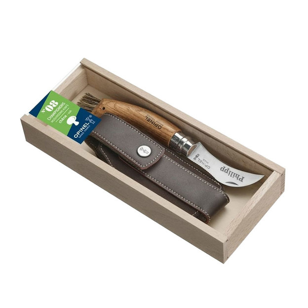 Vous avez trouvé l'outil parfait pour aller aux champignons. Ce magnifique couteau à champignons Opinel N°8 avec étui est votre meilleur allié pour la cueillette. La lame en acier inoxydable courbée permet des coupes précises et sans effort, tandis que le dos dentelé sert à gratter et à nettoyer les champignons. La brosse en soies naturelles en bout de manche est idéale pour éliminer en douceur les impuretés et poussières. Le système de pliage breveté avec la bague de sécurité Virobloc® garantit une manipulation sûre. Enfin, son manche en bois de chêne verni est particulièrement résistant aux insectes et aux champignons et le couteau est livré avec un étui en cuir. Paré pour une promenade dans les bois !