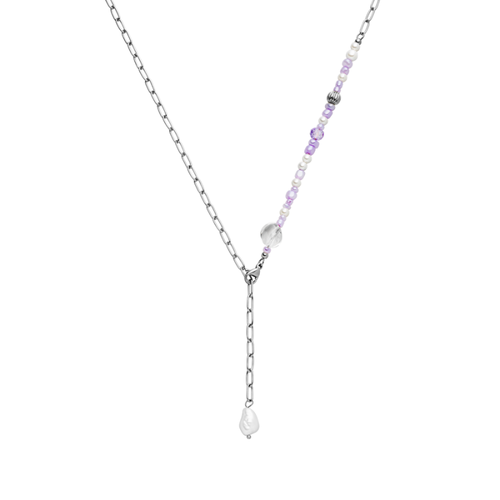 • Collier en Y avec un fin mélange de perles de couleur pastel