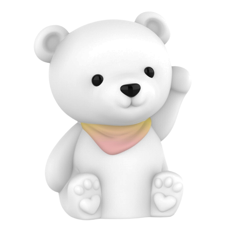 Découvrez l'adorable veilleuse petit Ours pour garantir à votre petit de doux et jolis rêves. Créez avec cette veilleuse une atmosphère paisible et magique dans une chambre d’enfant. Grâce à son matériau en silicone, ce charmant petit ours blanc est tout doux au toucher. Grâce à sa batterie rechargeable de 600 m Ah, vous n'aurez plus besoin de changer de piles, et le câble de chargement USB de 2 m inclus dans la livraison rend la charge très facile. Ce fidèle compagnon attend d’être adopté, qui résisterait ?