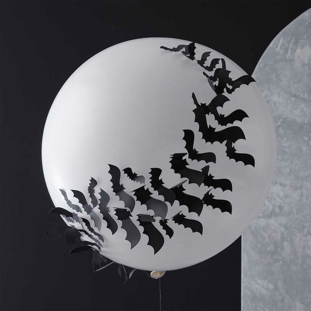 Cette année, faites les choses en grand et choisissez cet incroyable ballon pour vote décoration d'Halloween . Avec son diamètre de 81 cm, ce ballon blanc représente la Lune autour de laquelle virevolte une nuée de chauves-souris. Cet impressionnant ballon blanc géant d'Halloween avec des chauves-souris en 3D est certain d’attirer tous les regards ! Avantage : chaque chauve-souris peut être positionnée et collée très facilement.