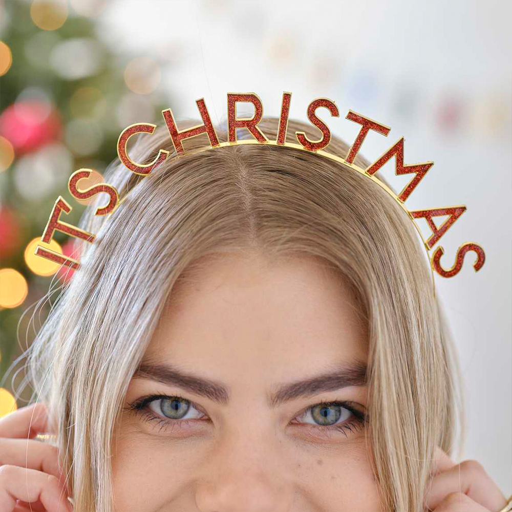 Ce serre-tête de Noël rouge et or “It`s Christmas” est l'accessoire parfait pour chaque fête de Noël. Il scintille entre les guirlandes lumineuses et autres décorations pour donner la touche finale à votre tenue. Chaque année, vous pourrez le réutiliser et faire scintiller votre serre-tête sous les lumières du sapin de Noël !