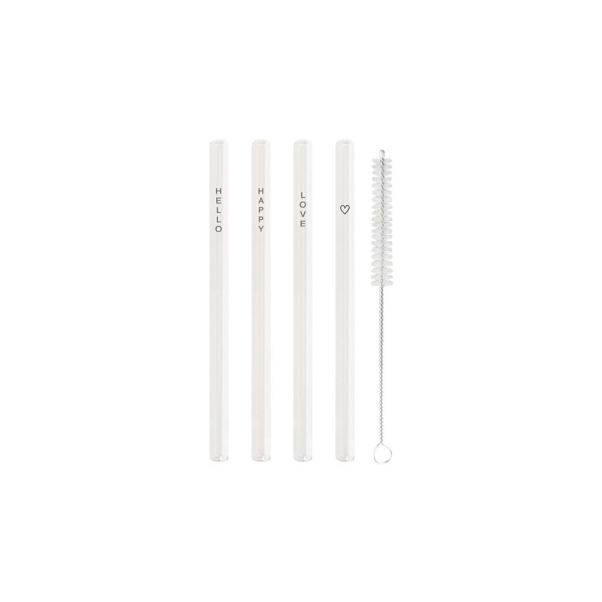 Ces pailles en verre borosilicaté sont durables et résistantes. Elles constituent une alternative parfaite aux pailles en plastique jetables traditionnelles avec le style en plus. Résistantes à la chaleur, vous pourrez les utiliser pour les boissons les plus diverses. Chaque paille est longue de 13 cm et décorée d'un magnifique imprimé en noir. Chacune des quatre paille est différente, ce qui est non seulement agréable à l'œil, mais permet aussi de distinguer facilement votre boisson des autres sur la table.