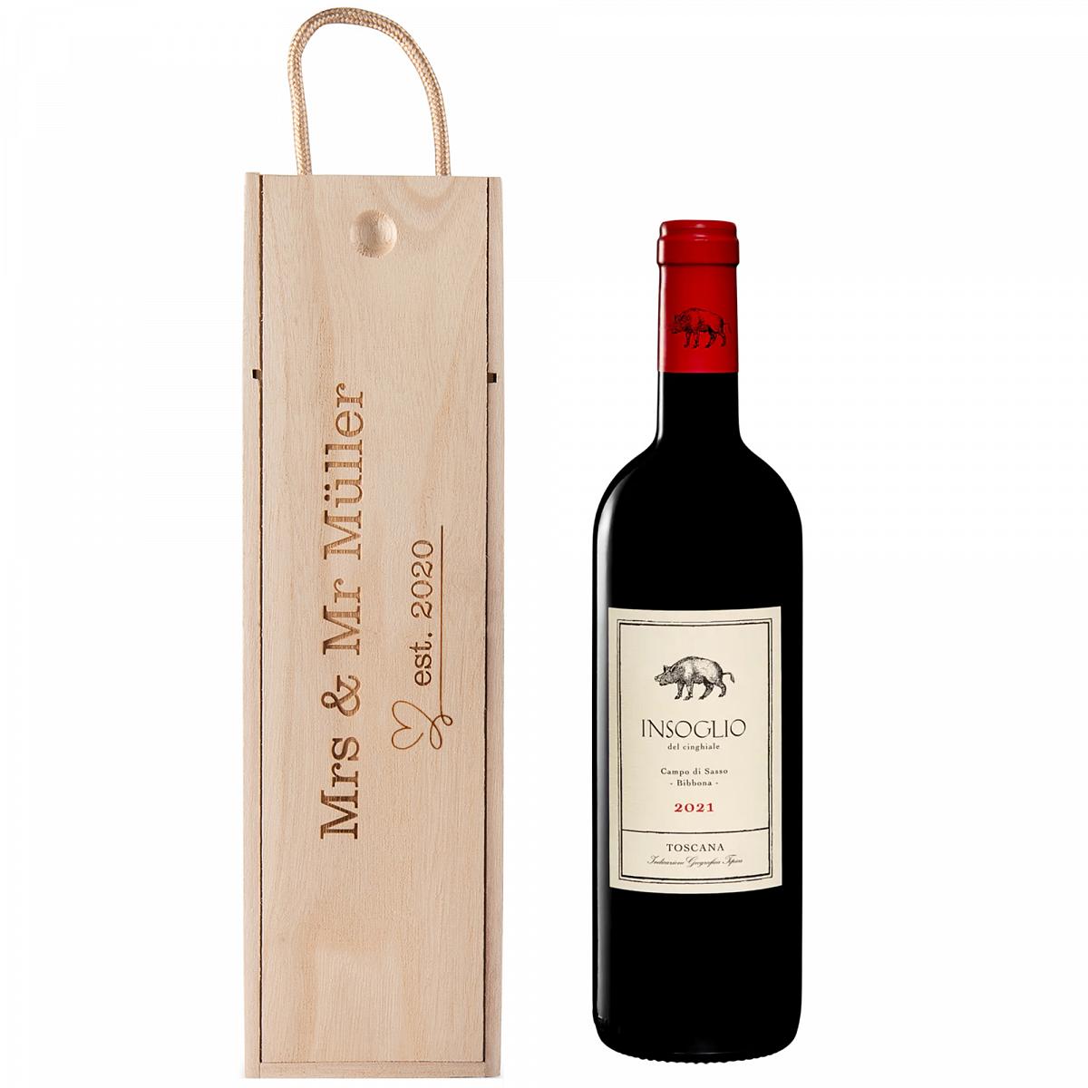 Coffret bouteille de vin personnalisable avec Insoglio del Cinghiale 0,75 l