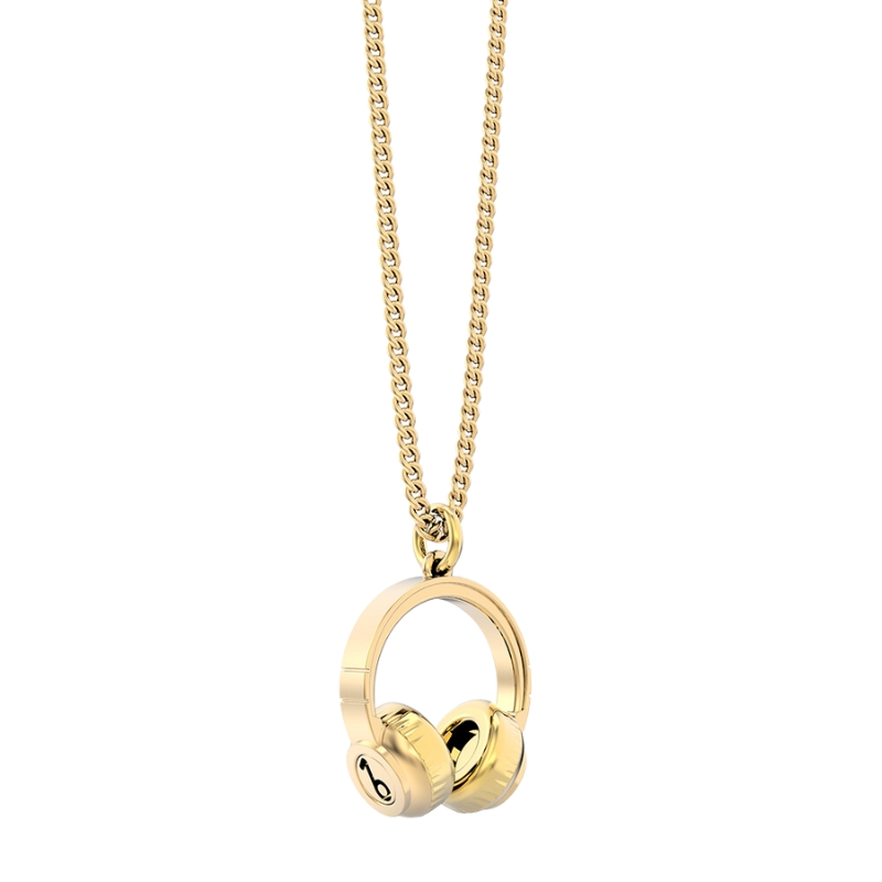 Un collier doré avec un pendentif en forme de casque audio donne à votre outfit une élégance moderne unique. La note de musique noire peinte sur les écouteurs dorés allie coolitude et luxe. Un bijou parfait pour les fans de musique et amateurs d’écouteurs. Un accessoire incontournable pour un style unique et raffiné.