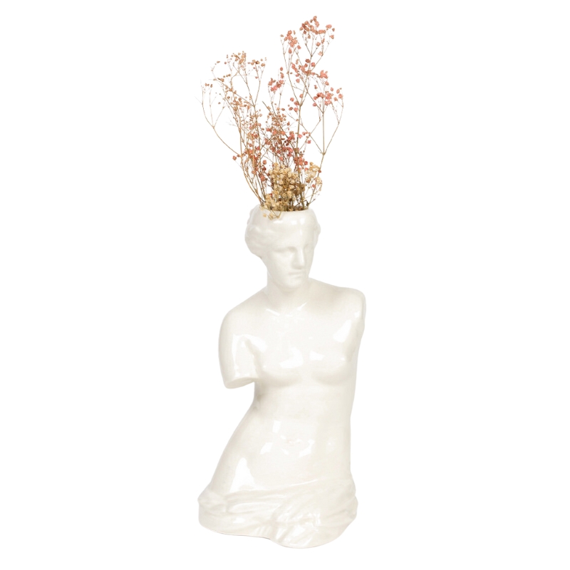 Succombez à la déesse de l’amour avec le Vase Vénus de DOIY. Ce vase unique en céramique a la forme de la déesse Vénus, symbole d'amour et de beauté ne laisse pas indifférent. Il allie art et fonctionnalité d'une manière téatrale. Son design romantique ne sert pas seulement de sculpture, c’est aussi un vase élégant pour vos fleurs. Utilisez-le pour disposer des fleurs, des branches, des plantes ou d'autres objets décoratifs et exprimez votre art. Ce vase en céramique de qualité est disponible en différentes couleurs romantiques.