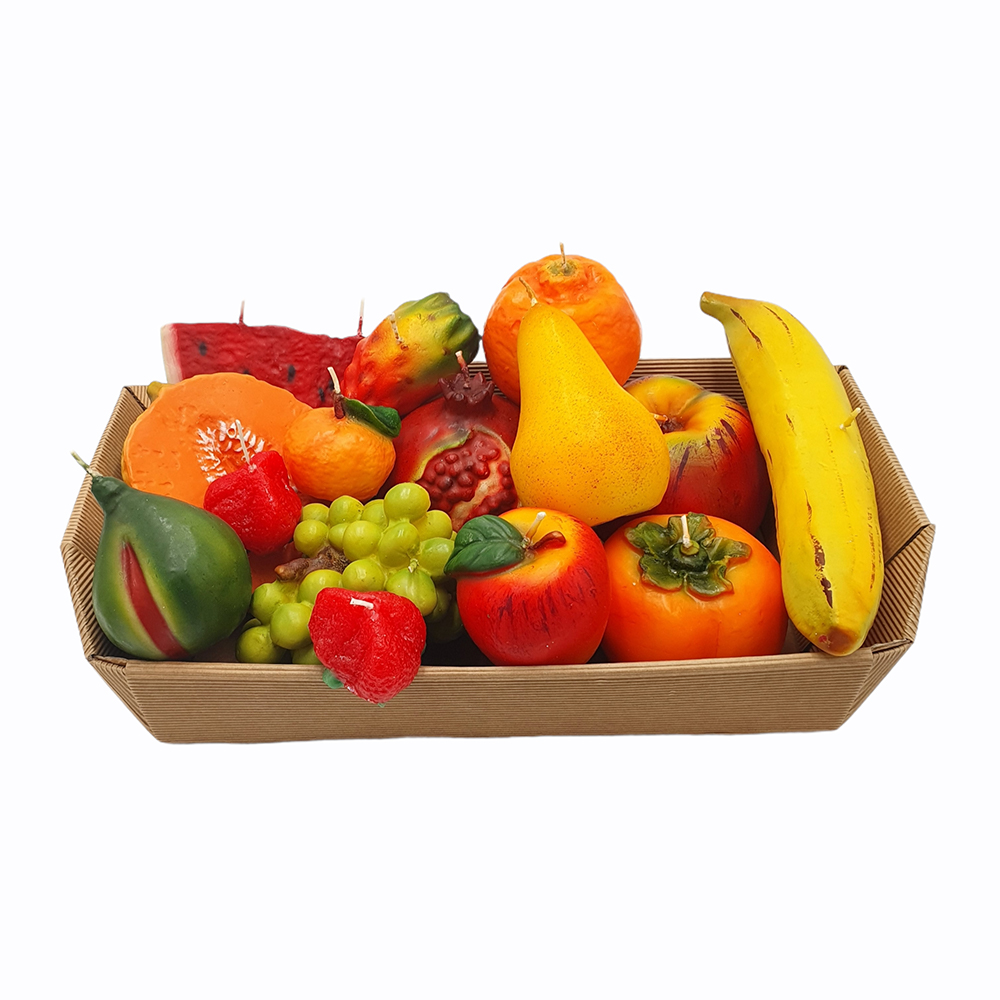 • Corbeille de 15 bougies différentes en forme de fruits - cire de qualité et effet trompe-l'œil