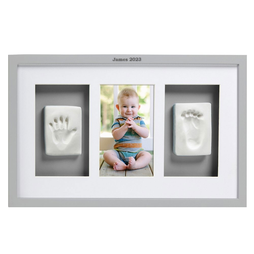 - Trois sections pour y placer une photo et deux empreintes d’enfant