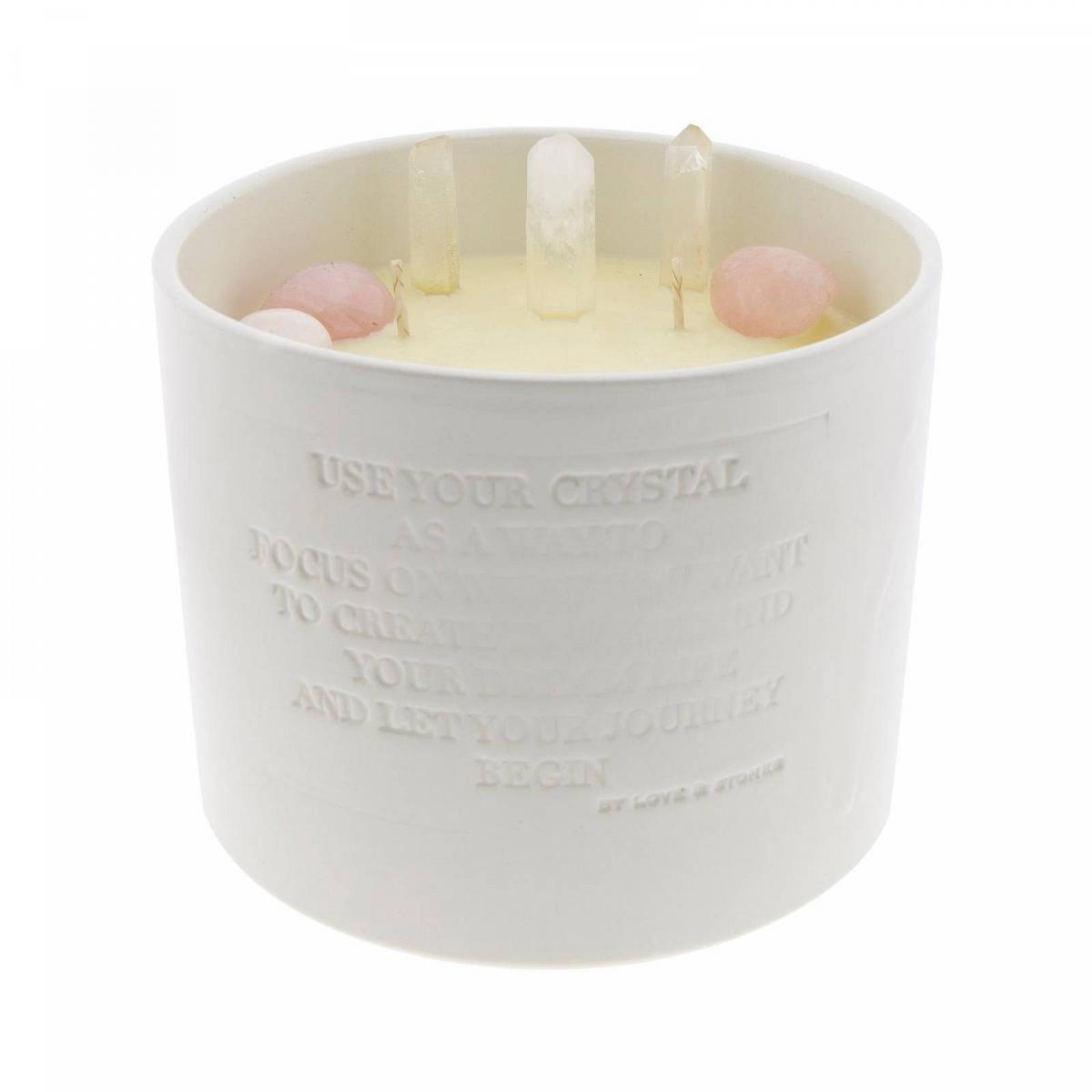 Bougie aux cristaux de Quartz Rose & Blanc "Big Faith" - XL
