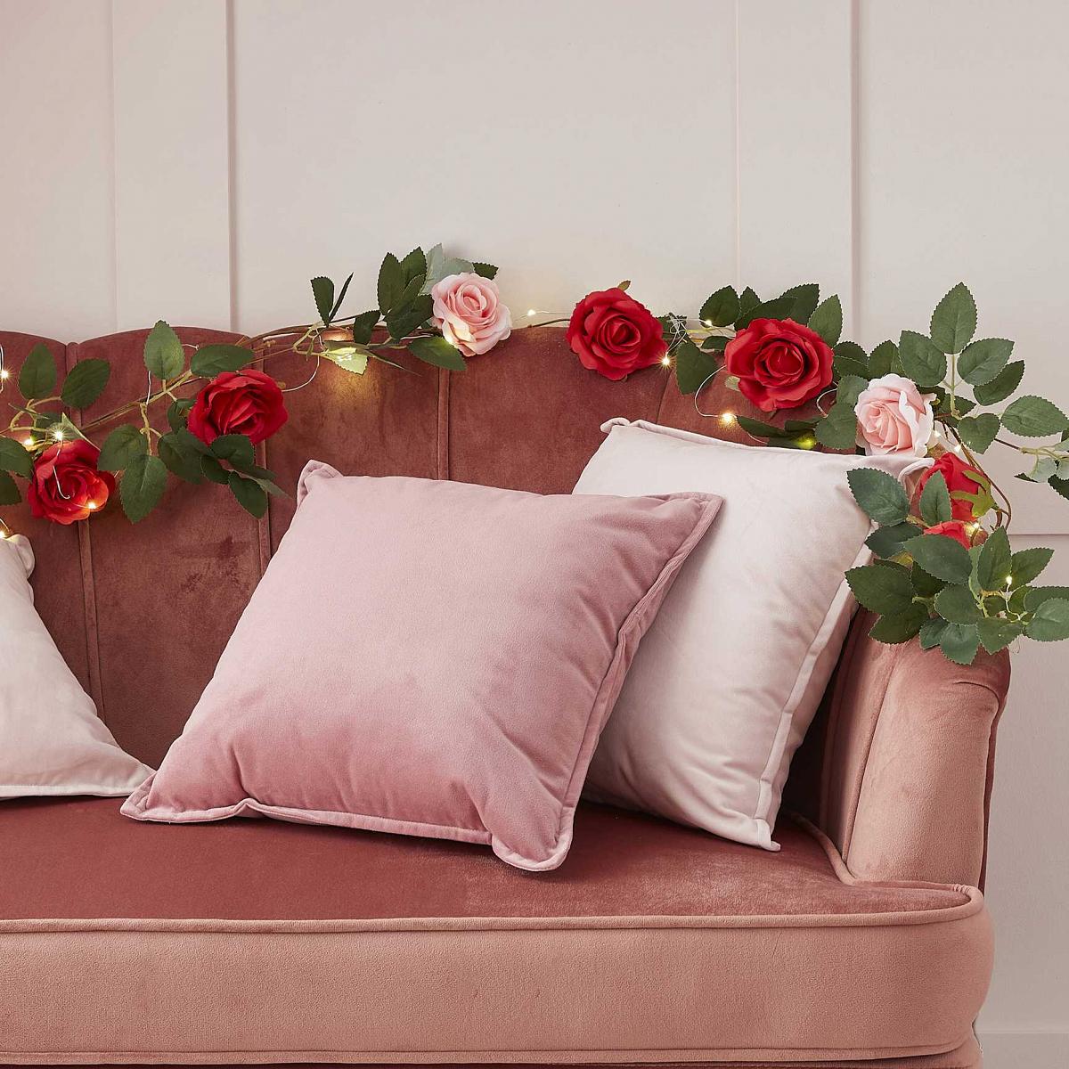 Guirlande de roses artificielles avec guirlande lumineuse