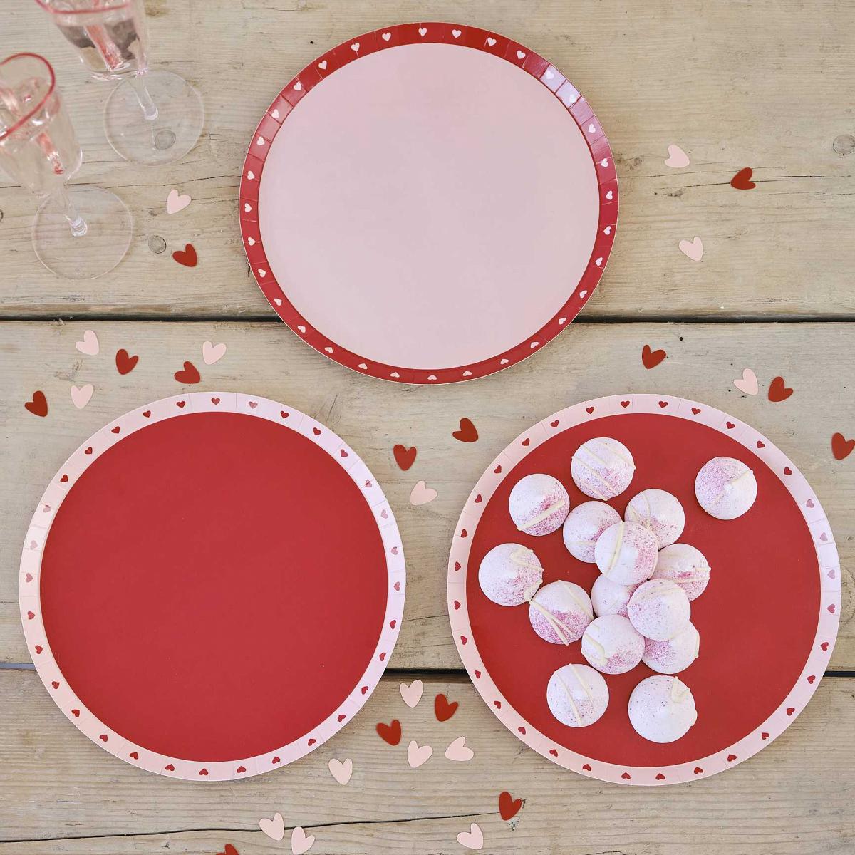 Servez des friandises ou des douceurs sucrées à quelqu'un de spécial dans ces adorables assiettes en carton décorées. Les motifs de cœur rouge et rose mettent dans l’ambiance de la Saint-Valentin. Ces assiettes en carton sont parfaites pour un pique-nique en amoureux ou toute autre occasion romantique. Combinez-les avec d'autres décorations de table pour la Saint-Valentin et surprenez votre moitié avec une touche romantique et un repas spécial.