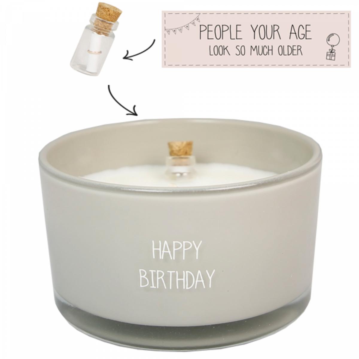 La bougie à message Happy Birthday est un cadeau particulièrement chaleureux avec une note personnelle. Cette bougie unique au parfum de figue cache dans la cire une fiole contenant un message pour l'anniversaire. Voici un cadeau idéal pour présenter vos vœux d'anniversaire de manière originale.