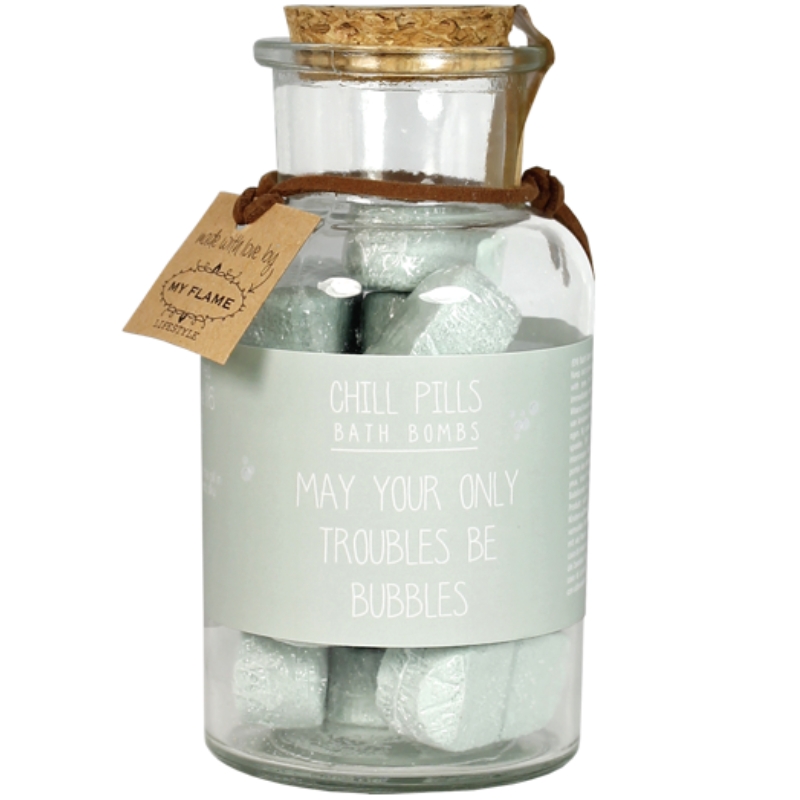 Découvrez une pause différente avec les Chill Pills - 16 bombes de bain effervescentes relaxantes dans un flacon en verre. Faites tomber une, deux ou même trois Chill Pills dans votre bain et laissez-les se dissoudre dans l'eau de votre baignoire. Profitez du parfum apaisant de Minty Bamboo : un mélange de pomme, de menthe, de bambou, de lys, de pensées et de tubéreuse, qui transforme votre bain en une oasis de fraîcheur et laisse votre peau douce et soyeuse.