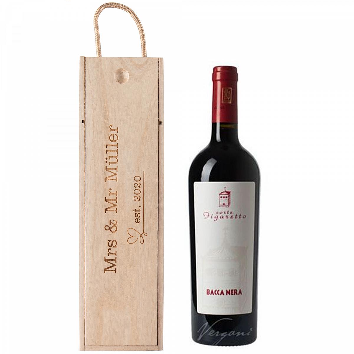 Coffret bouteille Bacca Nera avec gravure personnalisée