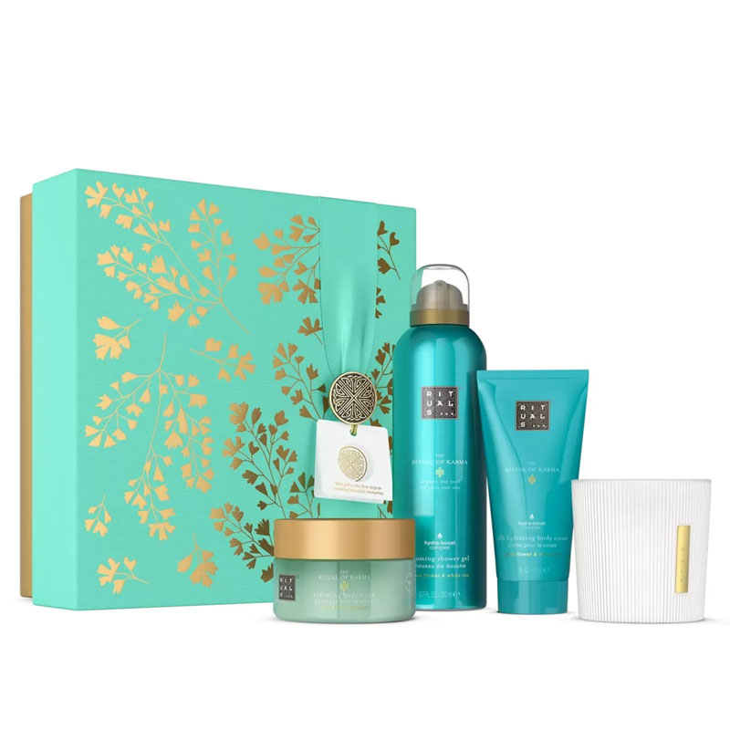 Offrez(-vous) le plaisir d’une brise estivale stimulante avec les senteurs de fleur de lotus et de thé blanc du coffret-cadeau The Ritual of Karma. Ce très beau coffret bien-être est une idée-cadeau idéale pour un ou une amie, un membre de votre famille ou pour vous faire plaisir ! Prolongez l’été tout au long de l’année avec ces produits de soin qui contiennent le nouveau Complex Hydra-Boost. Celui-ci reconstitue les réserves d'hydratation de la peau avec de l'aloe vera, du squalane et des algues et assure un soin hydratant intense.