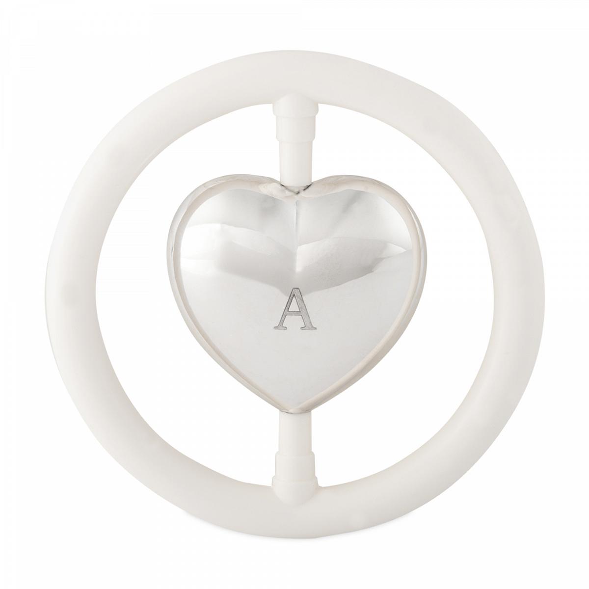 Anneau de dentition personnalisable avec hochet cœur, B90 argenté