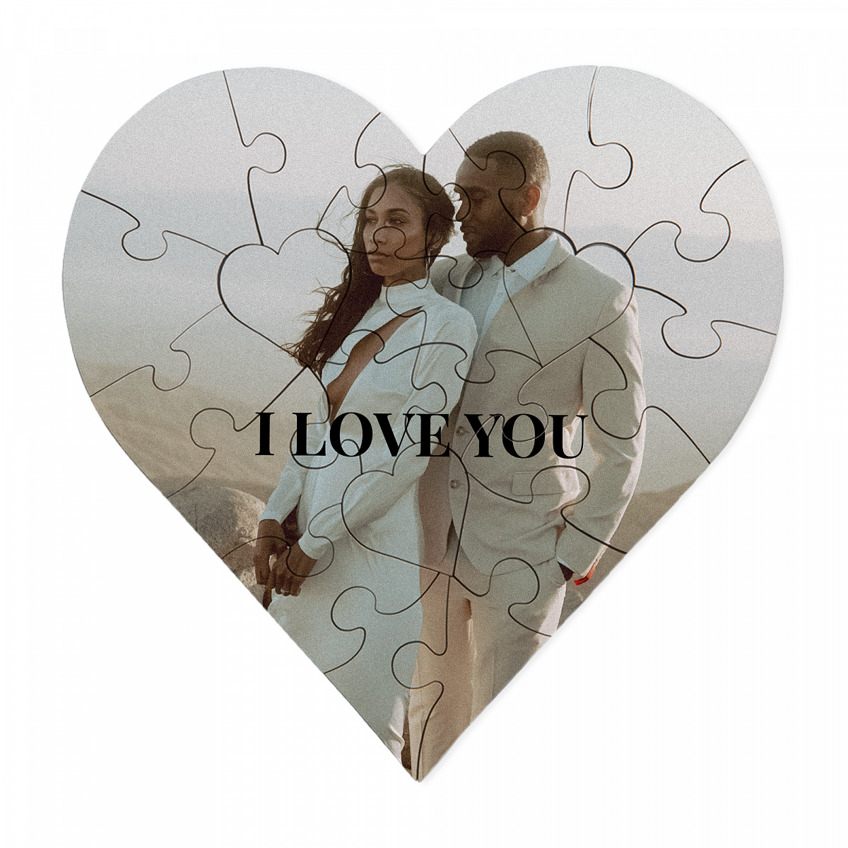 Créez un souvenir unique avec un puzzle en forme de cœur personnalisé avec le visuel de votre choix. Un puzzle de 23 pièces, dont chacune est un morceau de votre belle histoire. Exprimez ce que vous avez au fond de votre cœur pour réaliser le visuel de votre puzzle, que ce soit avec des photos, un message ou tout autre visuel personnel. Un puzzle spécial pour vivre d’inoubliables moments. Une idée de cadeau romantique et originale pour la Saint-Valentin !