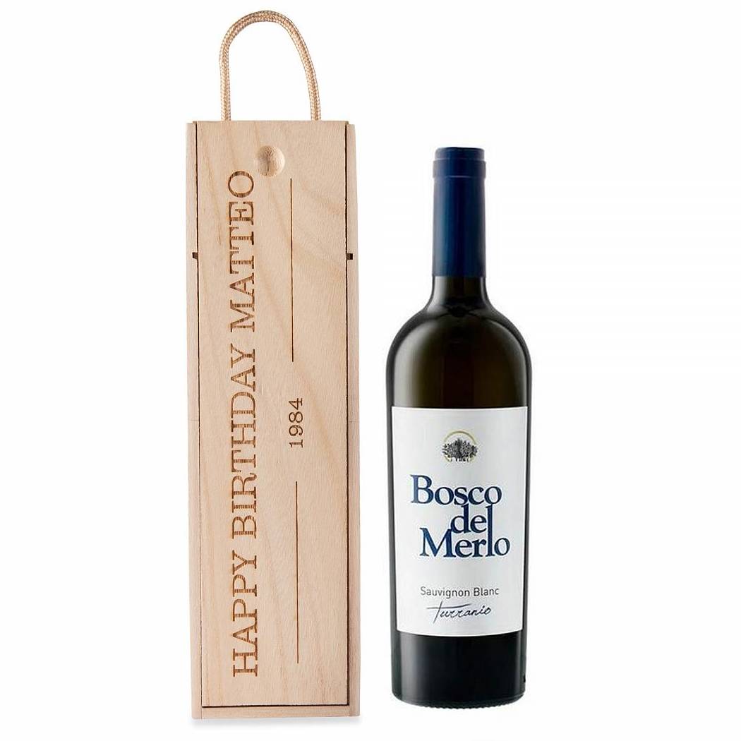 Coffret bouteille de vin personnalisable Sauvignon Turranio Bosco del Merlo