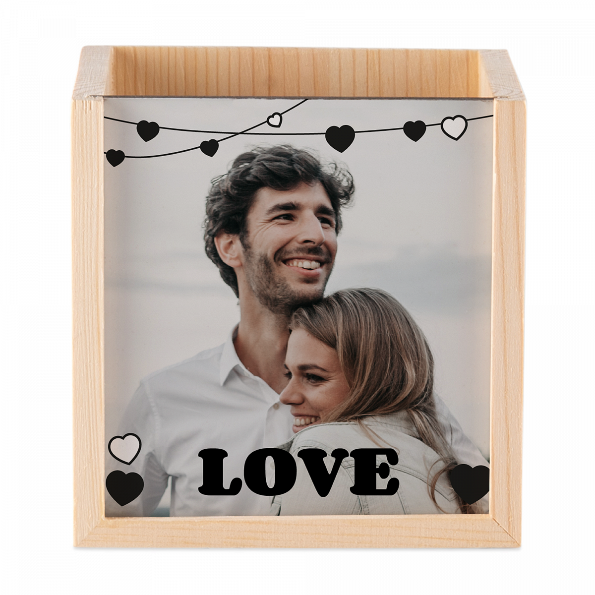 Pot à crayons personnalisable avec photo | Guirlande de cœurs