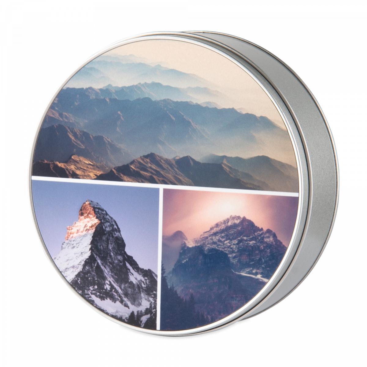 Boîte à biscuits ronde personnalisable avec photo | Collage