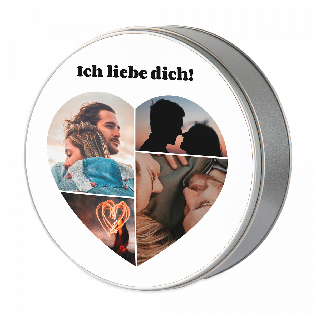Personalisierbare Keksdose Rund mit Foto | Herz Collage