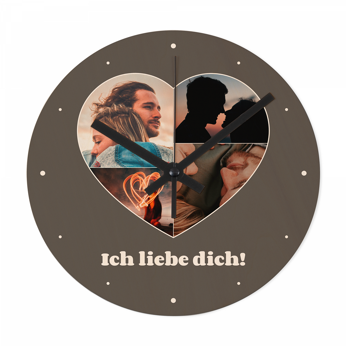 Personalisierbare Foto-Uhr aus Holz | Herz Collage
