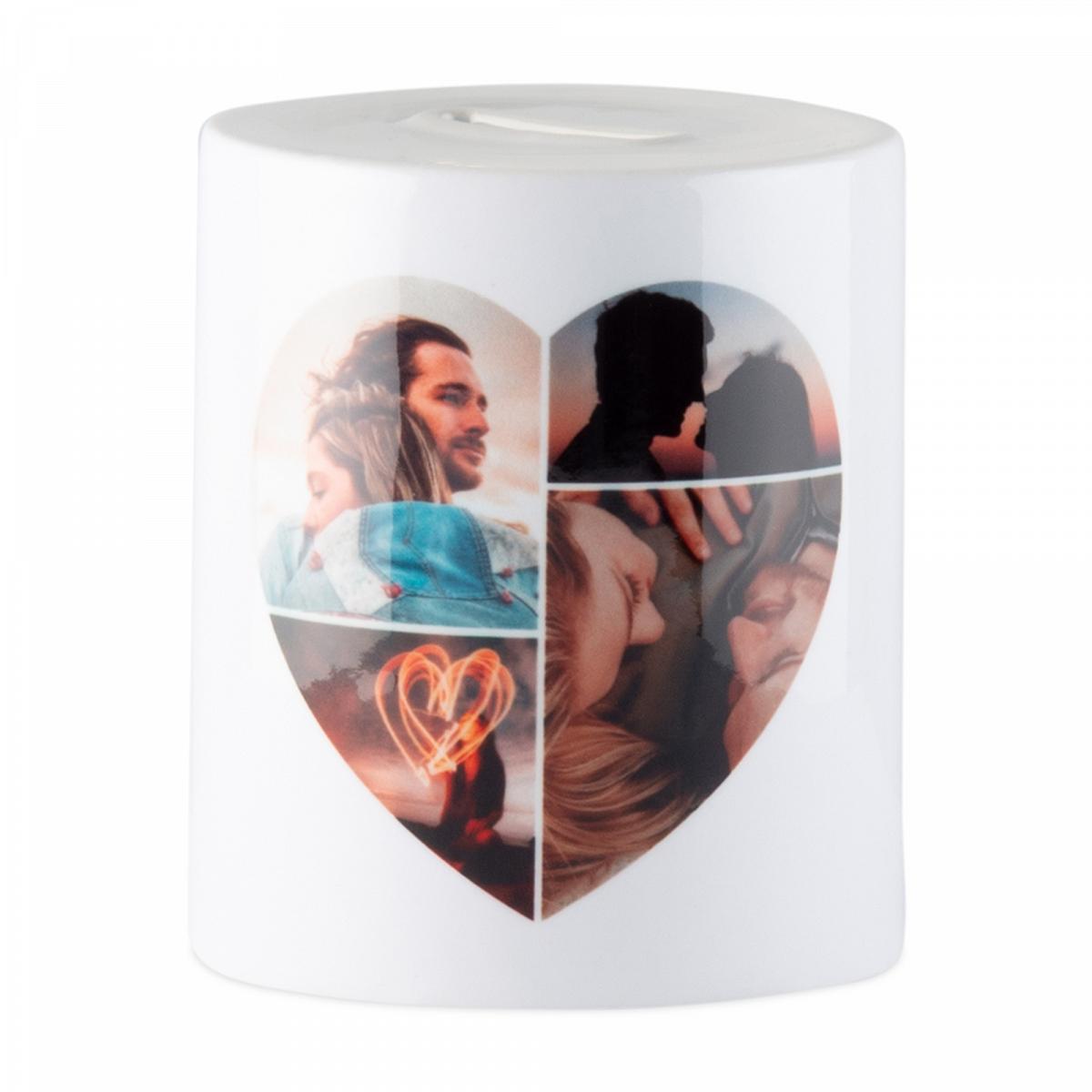 Tirelire personnalisable porcelaine blanche | Collage cœur