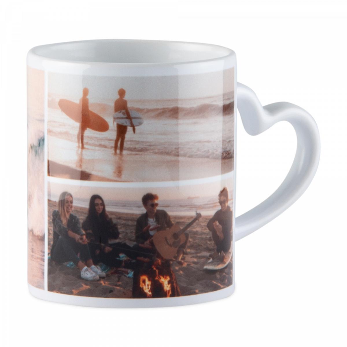 Mug photo personnalisable avec anse en forme de cœur | Collage