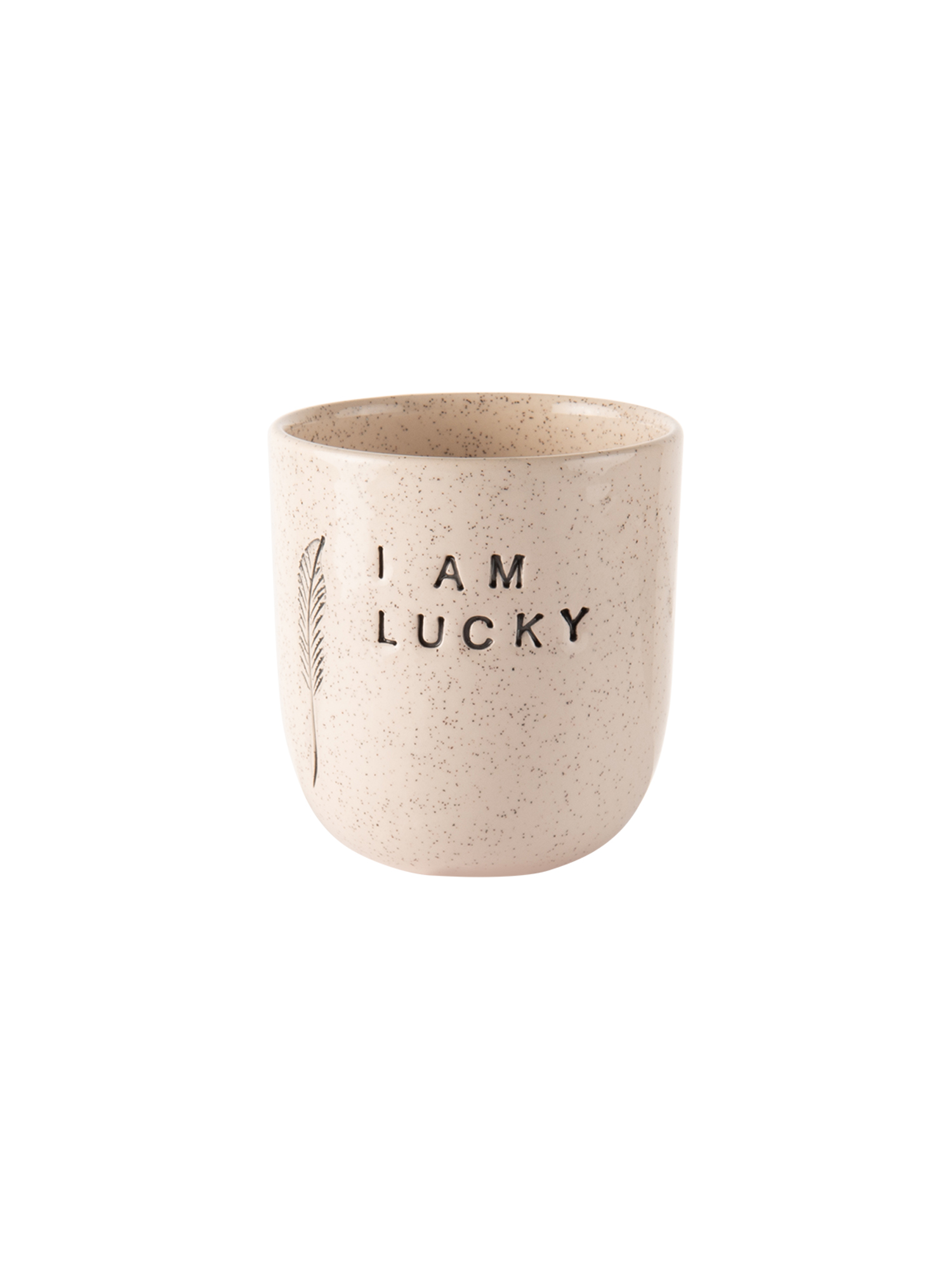 La tasse Feeling Good Inside I am lucky 8,5 cm transmet une sensation d'énergie positive et est une excellente façon de commencer la journée. La tasse est fabriquée à la main en céramique de haute qualité et provient de sources éthiques. Elle est compatible avec le lave-vaisselle et le micro-ondes.