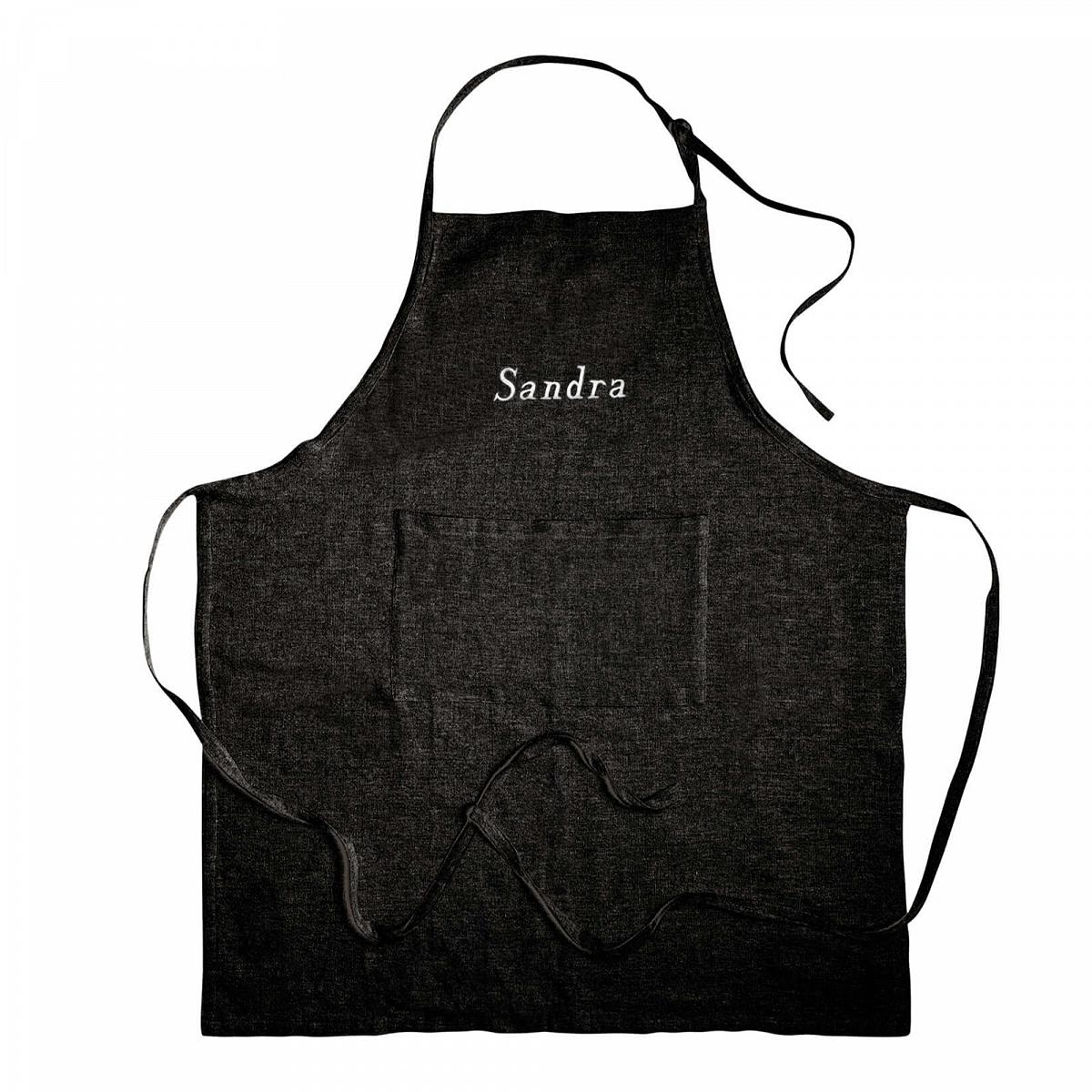 Ce tablier personnalisable noir est fabriqué à partir de fil de coton 100 % recyclé et tissé sur un métier à tisser manuel traditionnel. Brodé individuellement au nom de votre choix, c’est le cadeau idéal pour les épicuriens, les cuisiniers amateurs ou les maitresses de maisons soucieuses de l'environnement. En l'achetant, vous soutenez une cause sociale et durable.