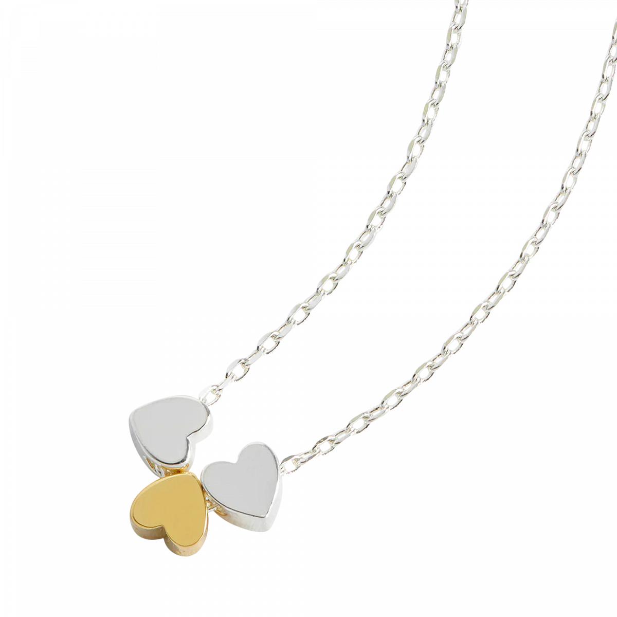 Délicate chaîne avec trois pendentifs à motif de cœur, dont un est doré