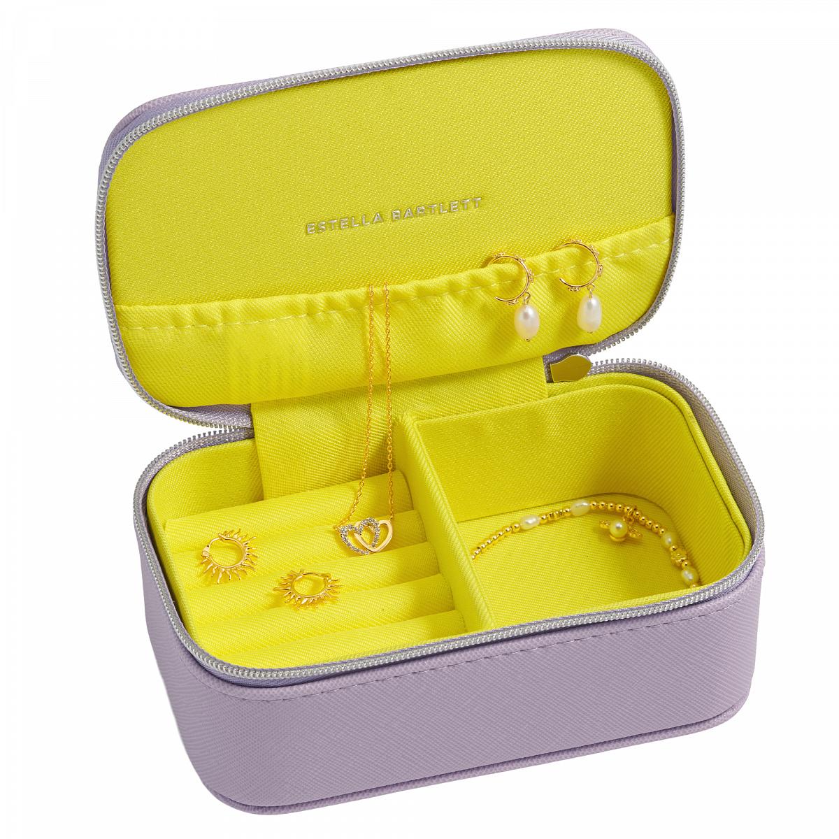 Découvrez la charmante boîte à bijoux « Rings and Things » d'Estella Bartlett. Ce mini coffret de couleur lilas et jaune est parfait pour ranger vos précieuses bagues et autres petits trésors ! Une adorable petite boîte à bijoux pratique et si jolie que vous ne voudrez plus vous en séparer. De plus, sa taille compacte la rend idéale pour la maison, mais également en déplacement.