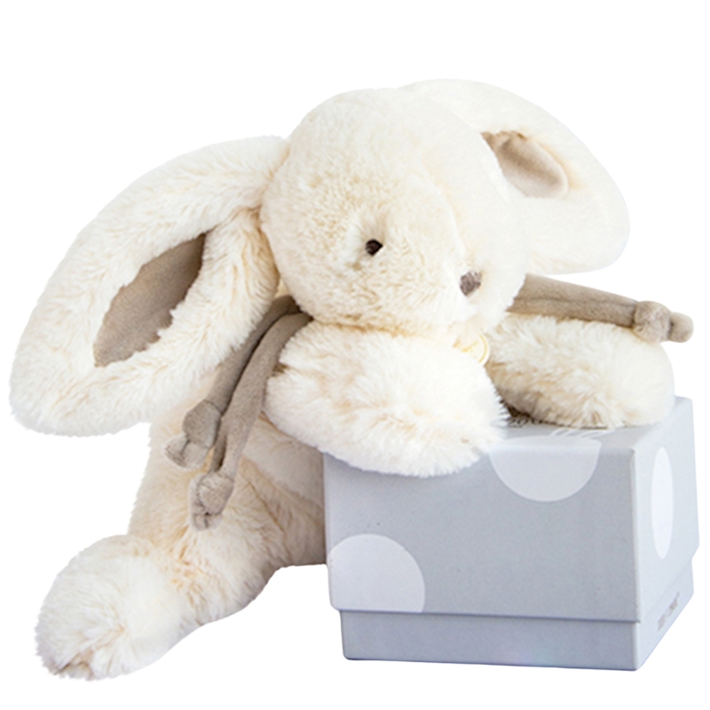 Cet adorable lapin crème, avec des détails taupe, deviendra rapidement le meilleur ami de votre bébé. Ce doudou en forme de peluche sera le confident et le partenaire de câlin préféré de votre tout petit. Livré dans un coffret-cadeau assorti, vous ferez plaisir aux heureux parents comme cadeau de naissance ou de baptême.