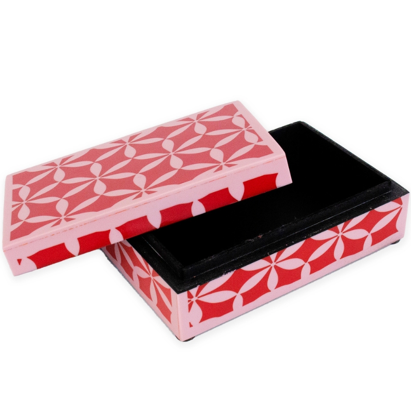 Ce joli coffret à bijoux Flower, dans les tons lumineux de rouge et de rose, sera parfait pour ranger vos bijoux préférés et autres petits objets. Cette boîte est une façon pratique de décorer votre maison avec élégance.