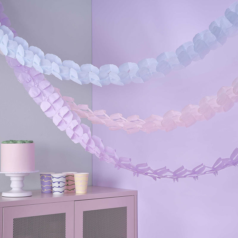 Réussissez votre décoration sur le thème pastel avec cette guirlande en papier de soie. Dans chaque paquet, vous trouverez 3 guirlandes en nid d'abeille d'une longueur de 2,80 m. En combinant cette guirlande d'anniversaire ludique avec d'autres décorations d'anniversaire pastel, vous apportez un vent de fraîcheur tout en finesse.