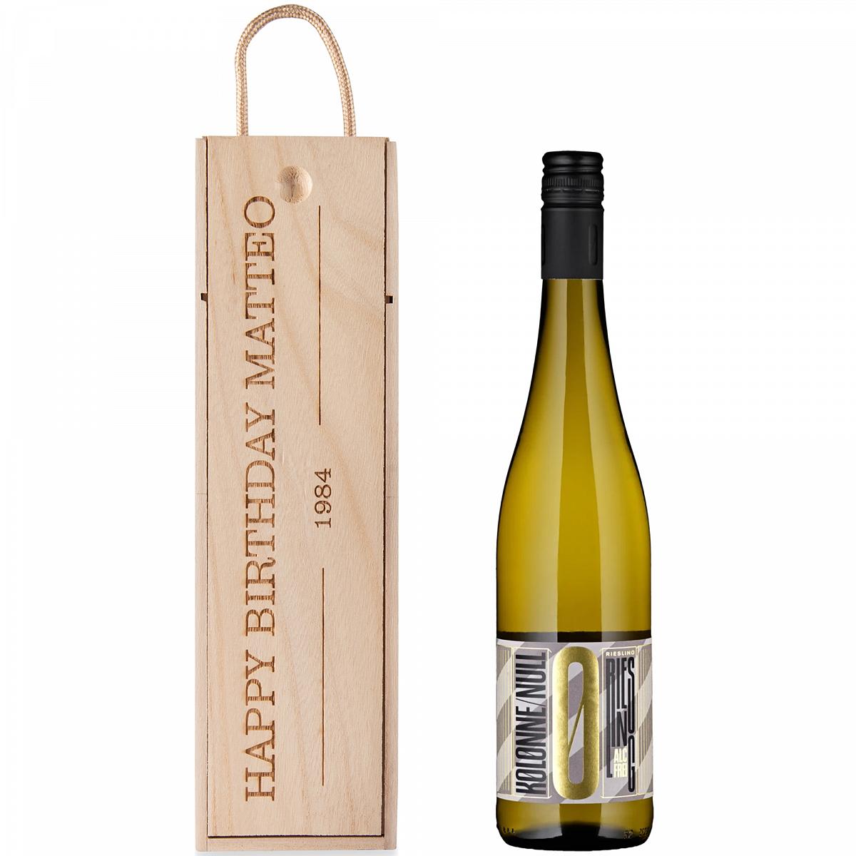 Coffret bouteille de vin personnalisable Kolonne Null Riesling 0,0% Vol