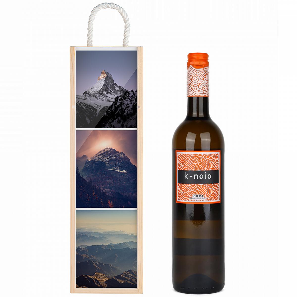 Ce coffret personnalisable contenant une bouteille de vin blanc de K-Naia DO 0,75l est un cadeau idéal pour les amateurs. Le K-Naia DO est un vin blanc de la région de Rueda qui impressionne par la fraîcheur de son fruit et sa légère amertume. Son profil gustatif rond combine des notes fruitées douces avec de l'herbe âpre et du fenouil, accompagnées d'une minéralité discrète et d'une finale rafraîchissante. Ce vin blanc facile à boire est conditionné dans une caisse en bois personnalisée selon vos souhaits avec le collage photo, un texte ou le visuel de votre choix. Un cadeau pour des occasions très spéciales et un véritable enchantement pour les connaisseurs exigeants.