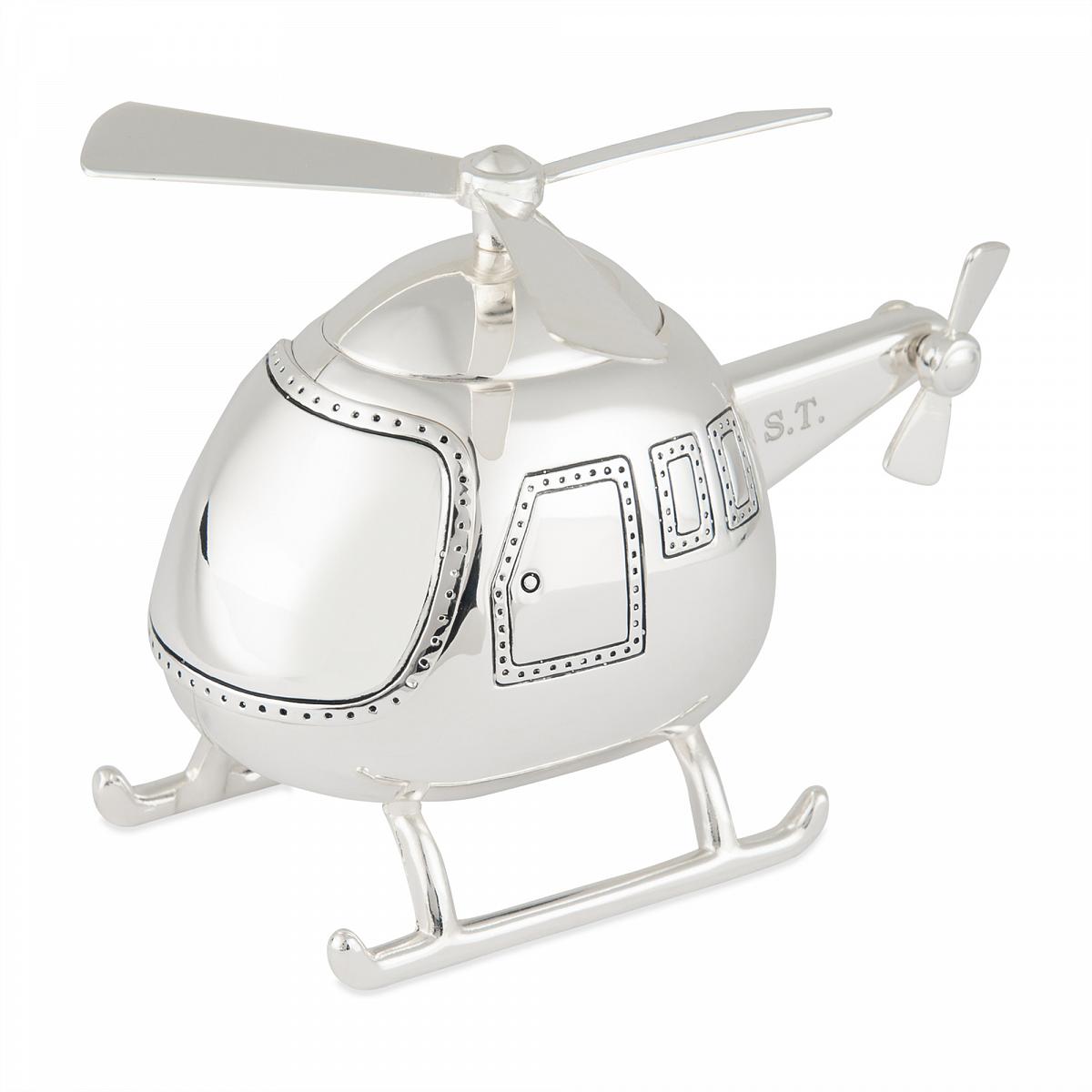 Cette tirelire plaquée argent en forme d'hélicoptère n'est pas seulement idéale pour conserver les premières économies de votre enfant, elle sera également un précieux souvenir. Grâce à la personnalisation par gravure, vous pouvez transformer cet hélicoptère aux reflets éclatants en un cadeau unique où figurent les initiales de votre choix. Voici une tirelire originale pour tous les fans d’hélicoptères.