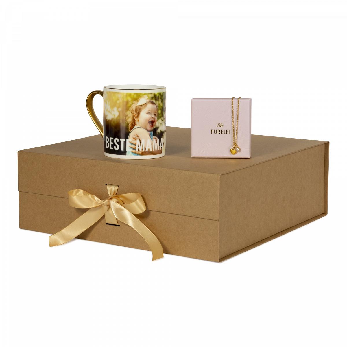 Surprends-la avec un charmant set cadeau composé d'une tasse photo personnalisable pour des souvenirs particuliers et de l'élégante chaîne à cœur Purelei en or, qui fera briller toutes les tenues. Le duo parfait pour allier amour et style !