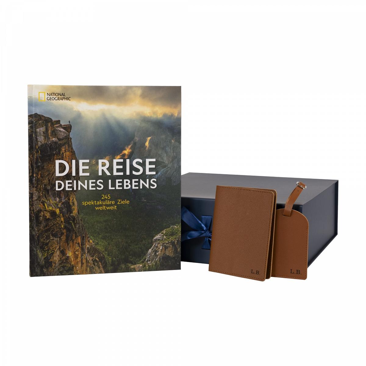 Coffret cadeau Voyage de ta vie avec étiquette de valise personnalisée & étui de transport